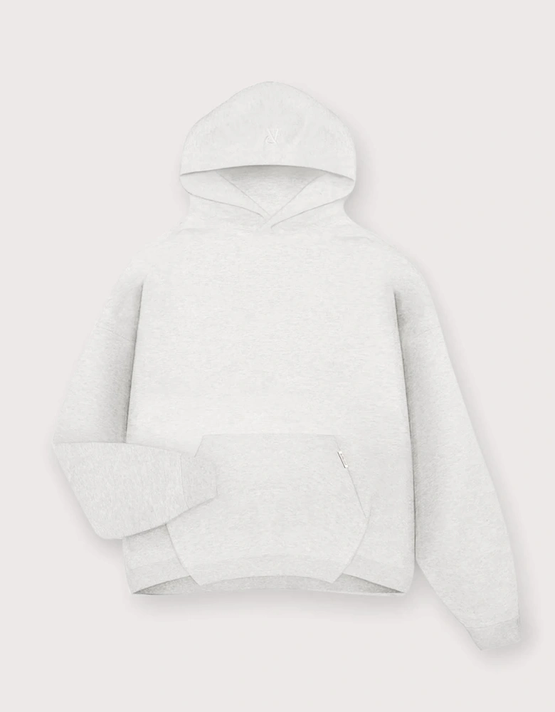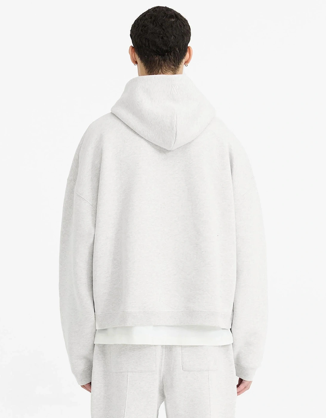 The Initial Oversized Hoodie is a super soft and comfortable hoodie in Ice Grey Marl, featuring an oversized fit, adjustable hood, and kangaroo pocket.