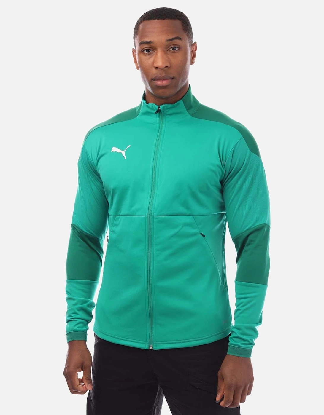 Juniors Puma Final Training Jacket featuring a full zip, side pockets, and engineered fabric with improved breathability.