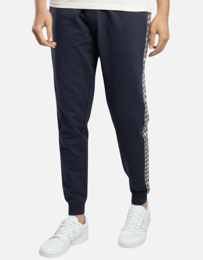 Stylish tracksuit bottoms by Aquascutum featuring a club check design on the side, cuffed bottoms, and an adjustable waistband for a comfortable fit.