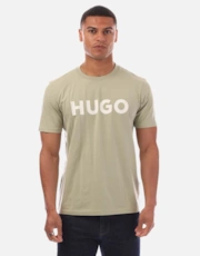 A stylish menswear T-shirt by HUGO, featuring a large logo print, crew neck, and made from soft cotton for comfortable wear.