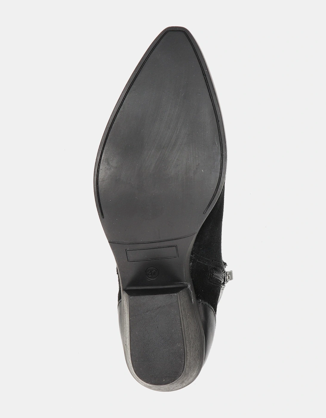 The TESSY cowboy boots feature a distinctive black leather and suede design, combining style and comfort with a soft lining and zipper fastening.