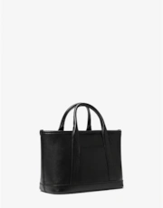 A stylish and practical small satchel crafted from pebbled leather, featuring an adjustable strap and multiple compartments for organization.