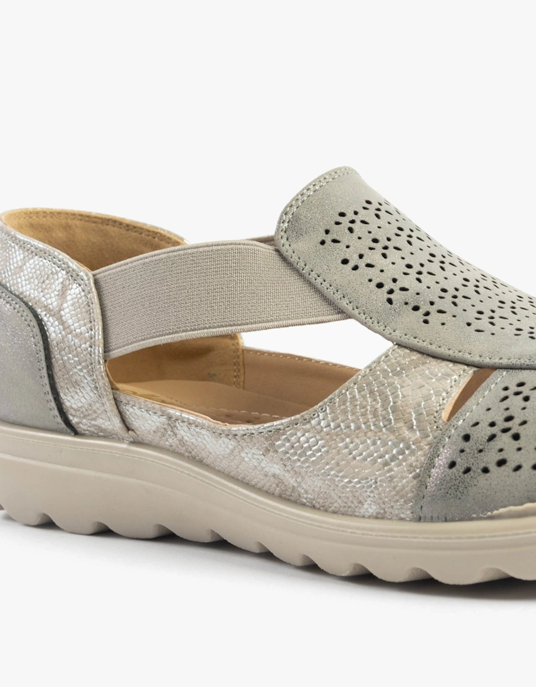Dr Keller POLLY Womens Sandals in Grey feature a comfortable slip-on design with a low heel, made from faux leather and synthetic materials.