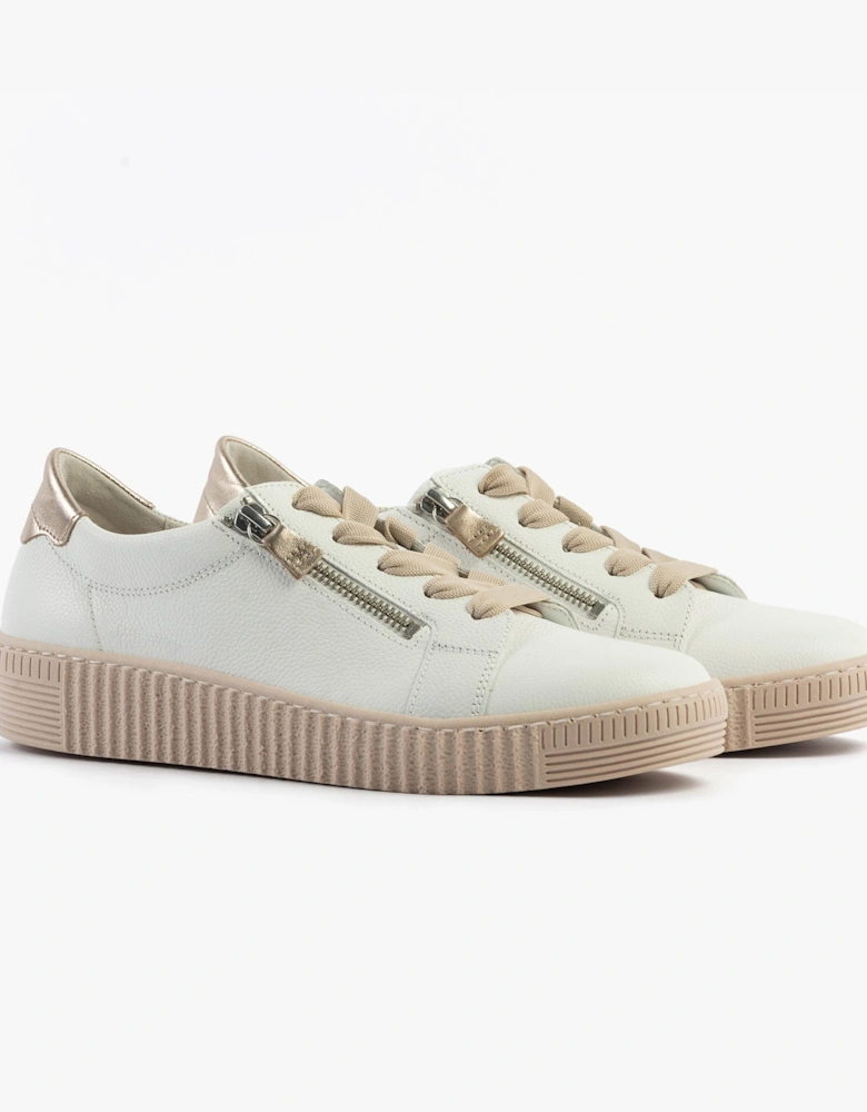 Gabor WISDOM Womens Trainers in White and Pink feature a casual design with leather upper and lining, and a comfortable lace-up closure.