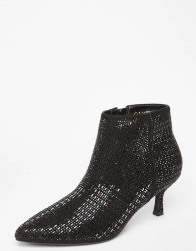 Black Embellished Flare Heel Boots