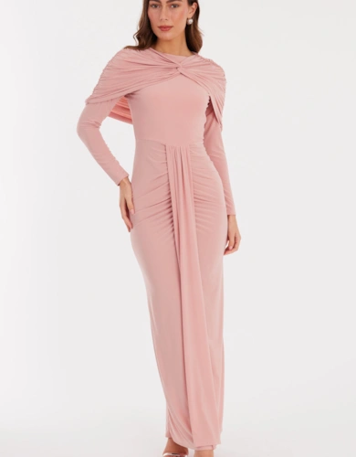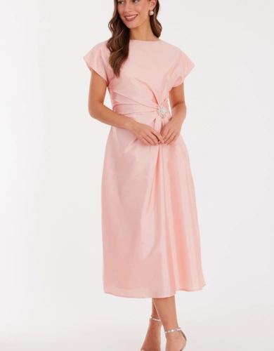 Brown Petite Satin Corset Midaxi Dress