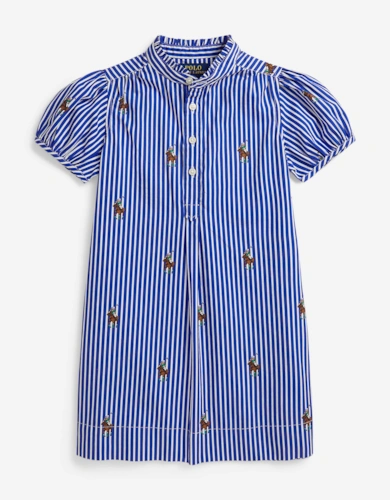Girls Ruffled Chambray Dress In Blue
