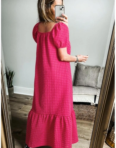 Rose Abstract Print Short Puff Sleeve Tiered Maxi Dress