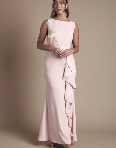 Rose Crepe Knits Capped Sleeve Round Neck Flr
