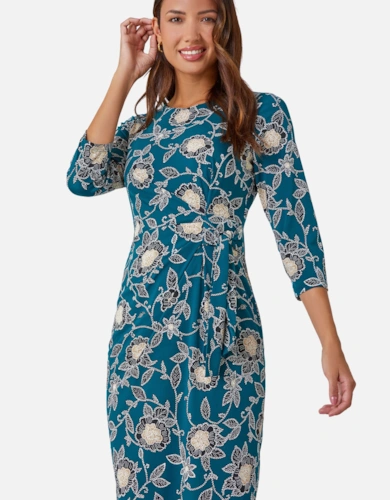 Drapey Crepe Trim Detail Ruched Maxi Dress