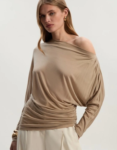 Textured Ruched Jersey Long Sleeve Top