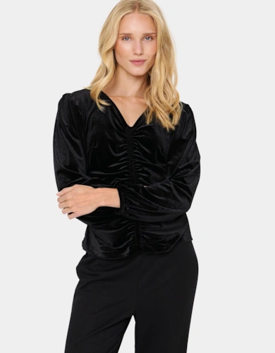 Tencel Ruched Asymmetric Neck Long Sleeve Top
