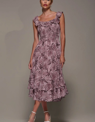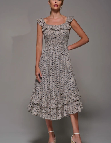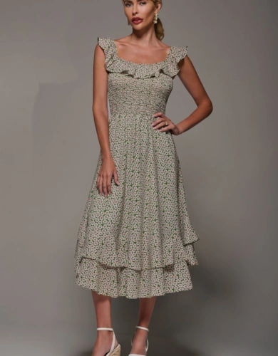 White Ruffle Short Sleeve Viscose Maxi Dress