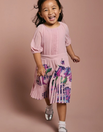 Petite Organza Long Sleeve Printed Lace Trim Dress