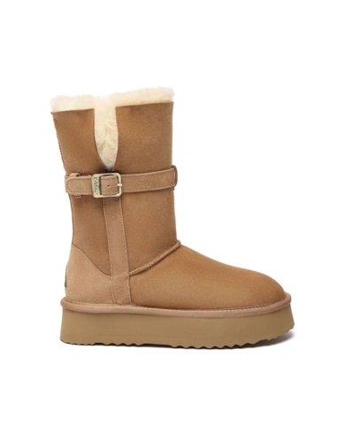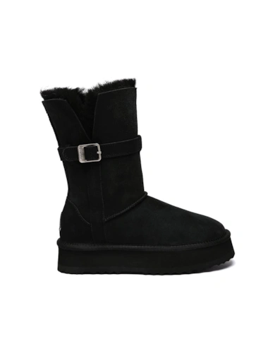 Real Sheepskin Brush 3-Way Style Platform Mid Boots With Eva Sole
