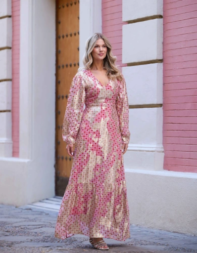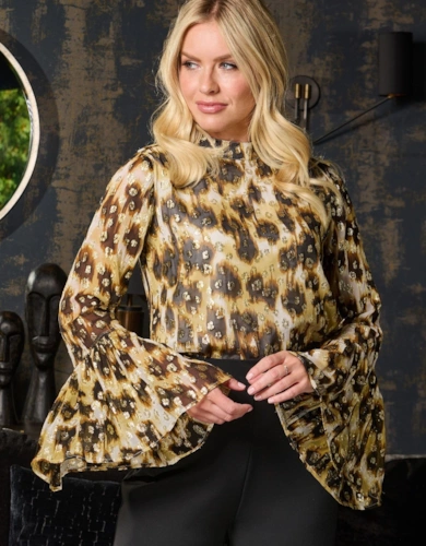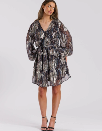 Metallic Long Sleeve Wrap Over Blouse