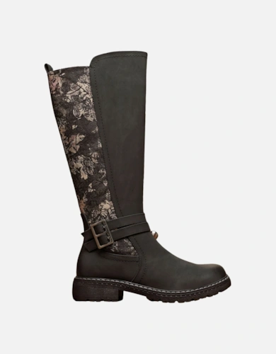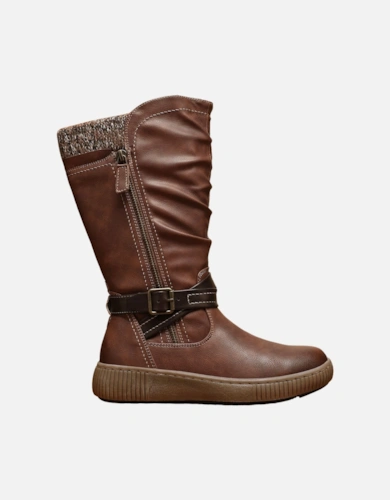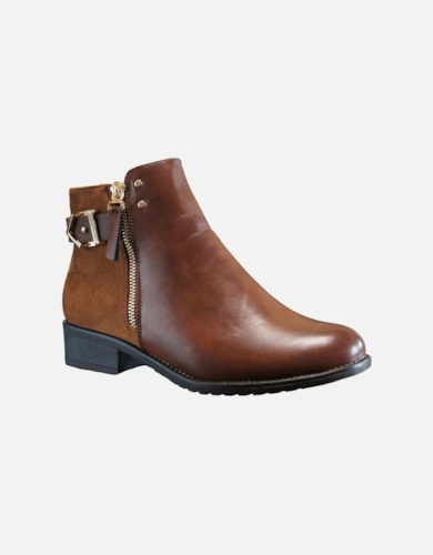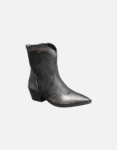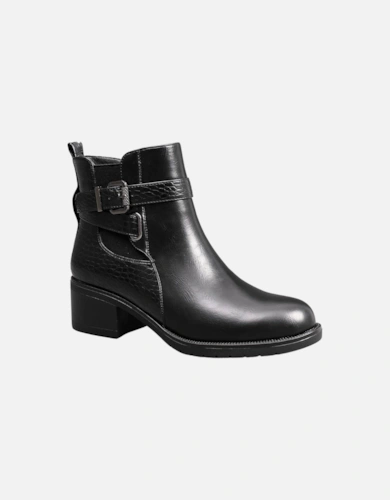 Fashion Faux Croc Buckle Deco Zip Closure Low Heel Ankle Boots