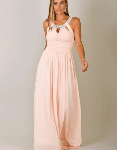 Diamante Neck Chiffon Maxi Dress