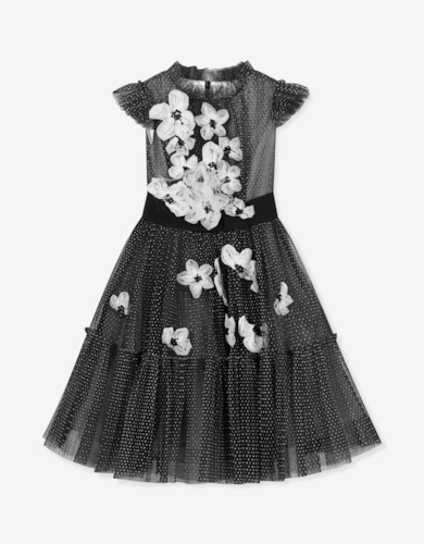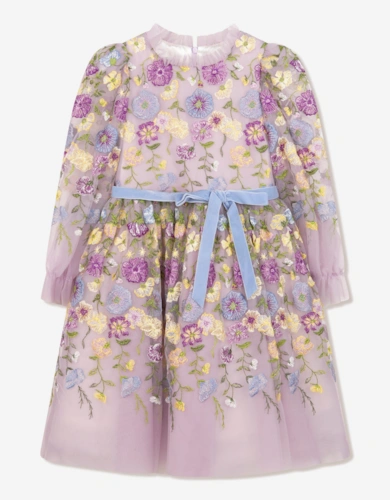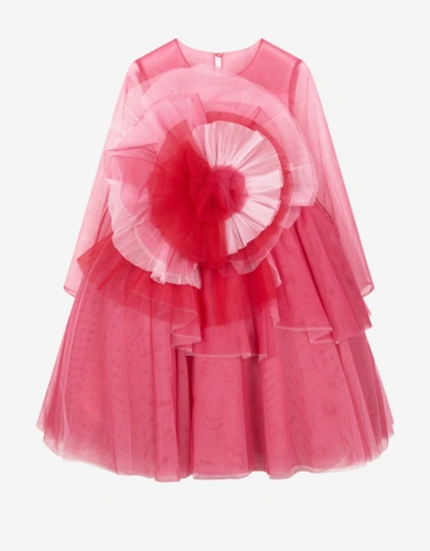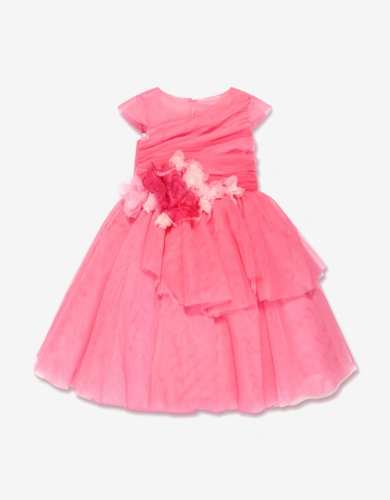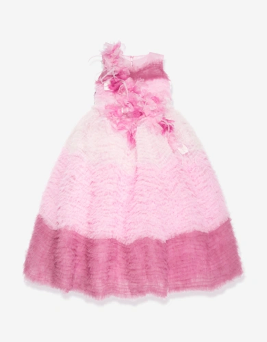 Girls Flower Embellished Degradé Tulle Gown In Pink