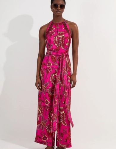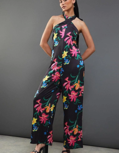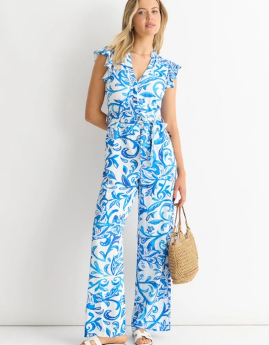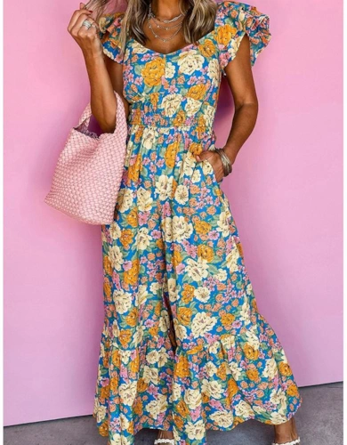 Blue Floral Ruffle Sleeeves Jumpsuit