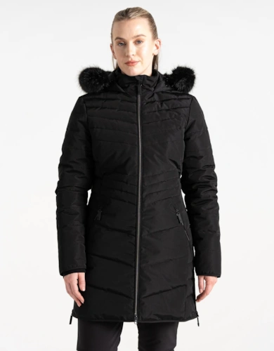 Womens Striking Iv Faux Hood Waterproof Longline Jacket