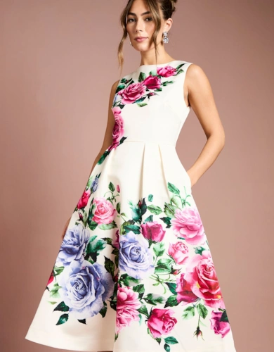 Structured Viscose Satin Animal Print Tailored Prom Mini Dress