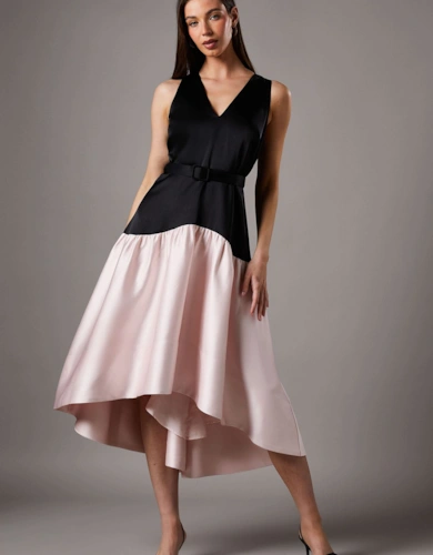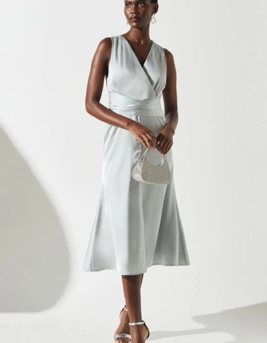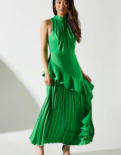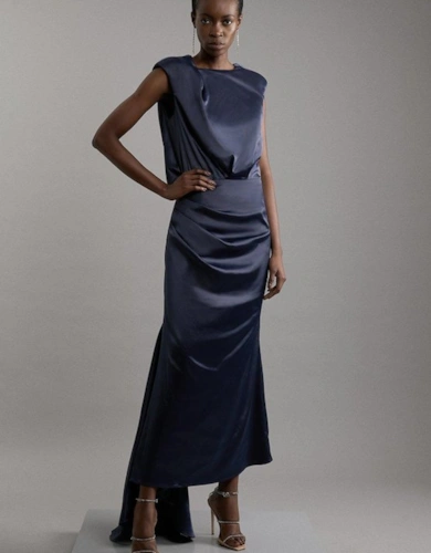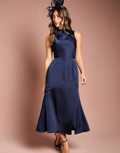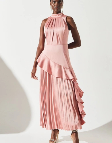 Graduated Stripe Viscose Satin Sleeveless High Neck Blouse