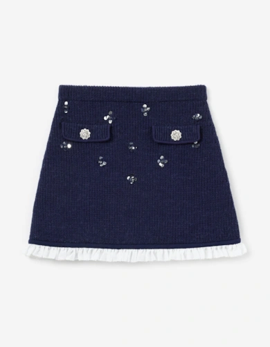Girls Bow Boucle Skirt In Pink