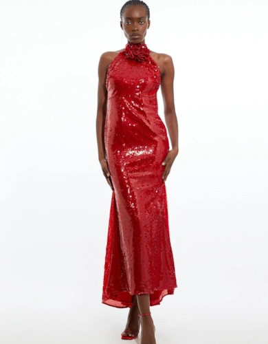 Womens/Ladies Ombre Sequin Halter Neck Midi Dress
