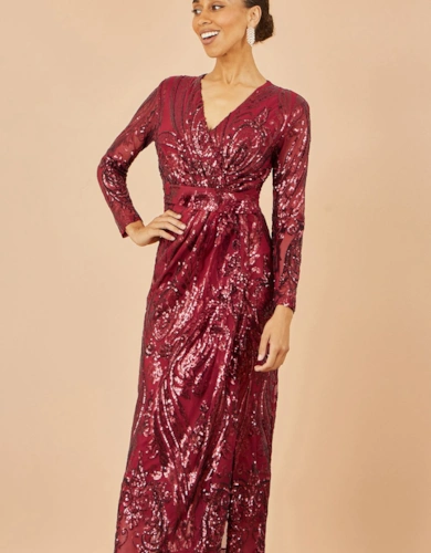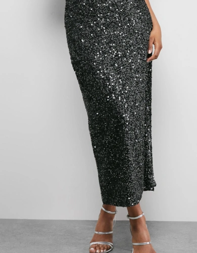 Sequin Embellished Off Shoulder Midi Wedding Guest Dress