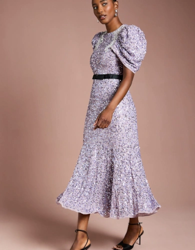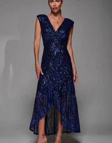 Sequin Power Mesh Lace Up Detail Long Sleeve Jumpsuit