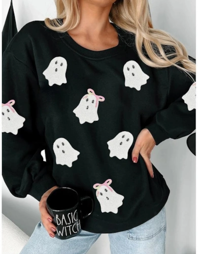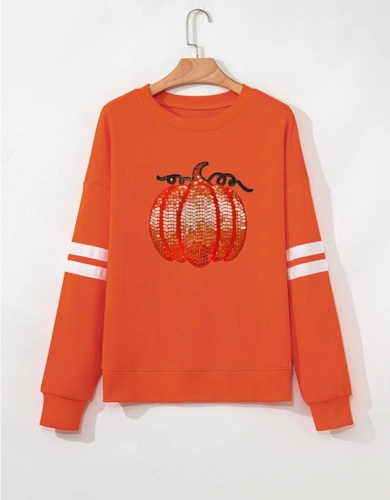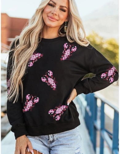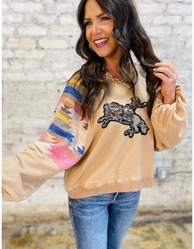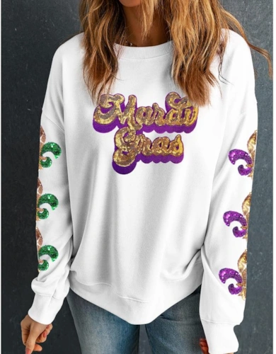 Gray Sequin Baseball Patched Casual Sweatshirt