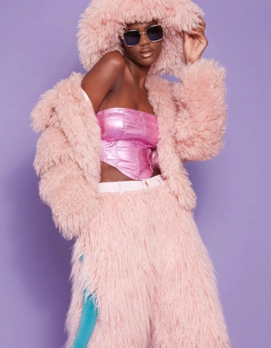 Faux Shearling Collar & Cuff Belted Midi Coat