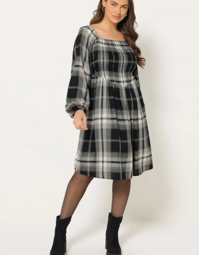 Womens/Ladies Spotted Shirred Cuff Mini Dress