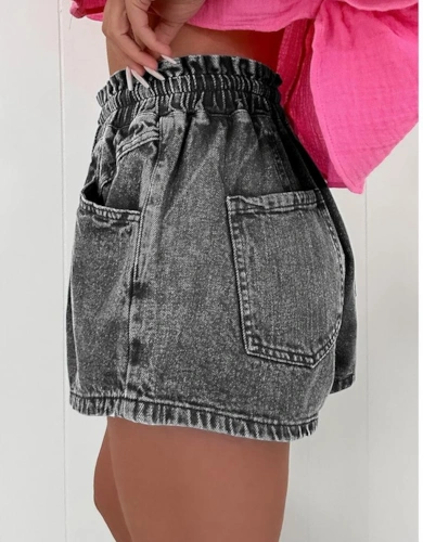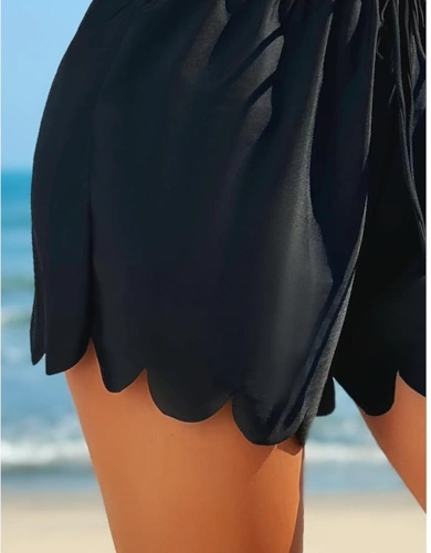 Black Plaque Plate Drawstring Swimshorts In Black