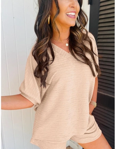 Phalaenopsis Corded Knit Long Sleeve Top And High Waist Shorts Set