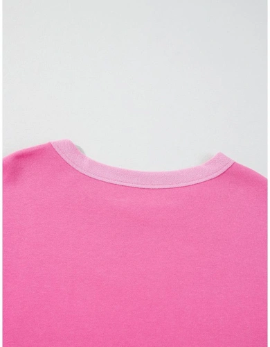 Sachet Pink High Low Patchwork Long Sleeve Top And Shorts Set