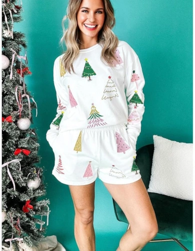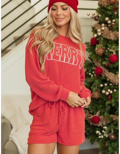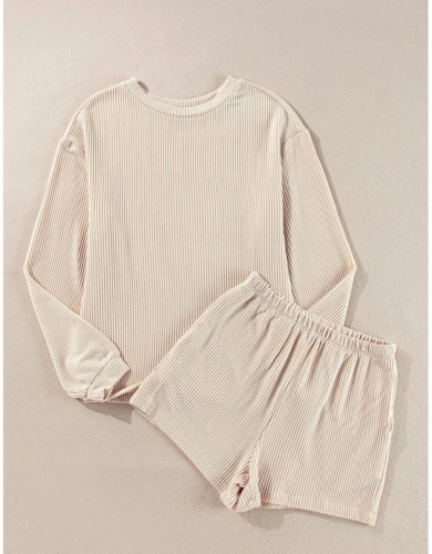 Blossom Checkered Textured Long Sleeve Top And Shorts Set