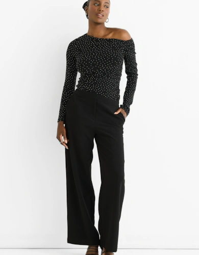 Black Diamante Slash Neck Top