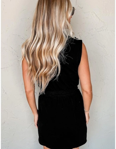 Black Waist Ruched Metal Trim Sleeveless Midi Dress