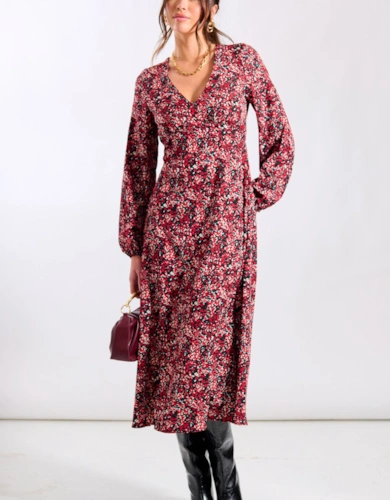 Jacquard Puff Sleeve Sweetheart Scuba Maxi Dress