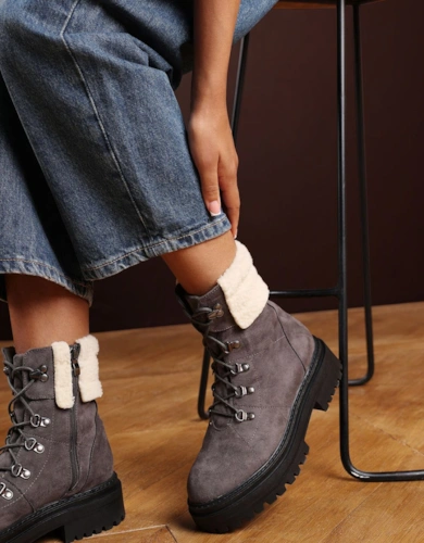 Real Wool Fabric Women Marbled Lace Up Platform Sneaker Boots With Eva Foaming Sole
