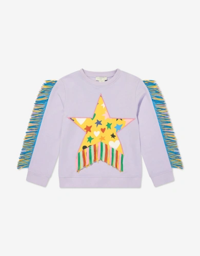 Girls Fringed Star Sweatshirt In Purple