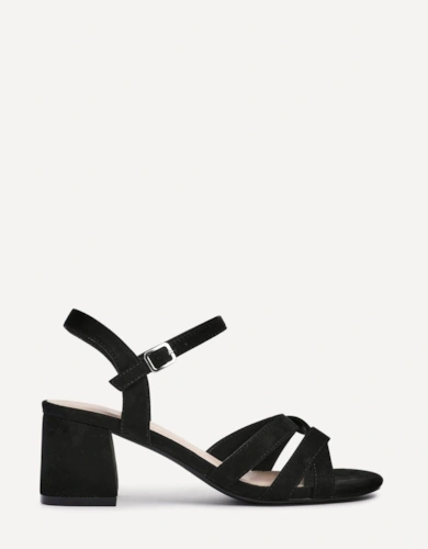 Mid Block Heel Crossed Straps Faux Suede Heeled Sandals