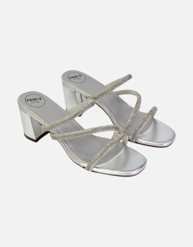Womens/Ladies Harlow Glitter Peep Toe Crossover Strap Block Heel High Heels