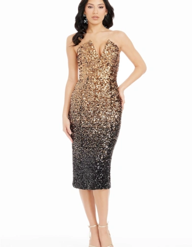 Digital Ophelia Ombre Beaded Strapless Woven Maxi Dress