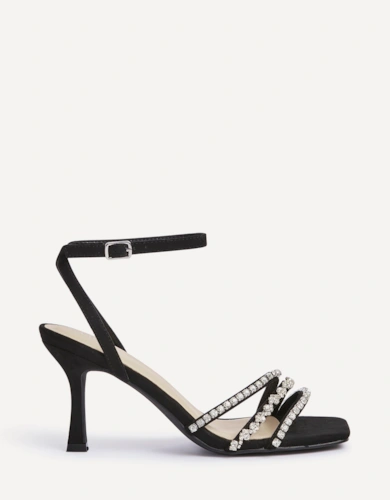 Mid Block Heel Faux Leather Pointed Toe Evening Party Strappy Heels