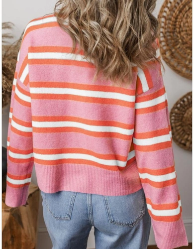 Lennie Striped Cardigan In Merlot And Green