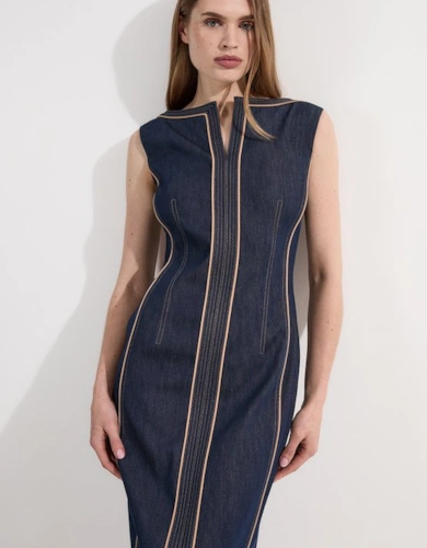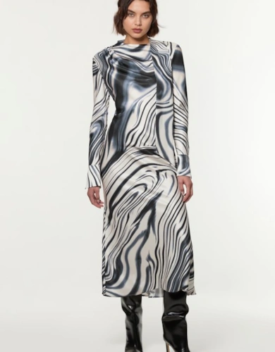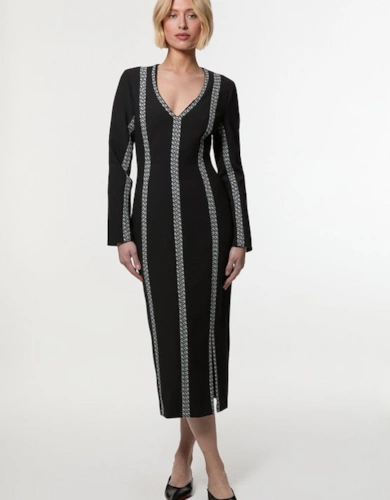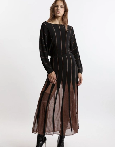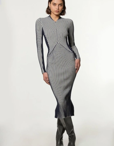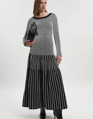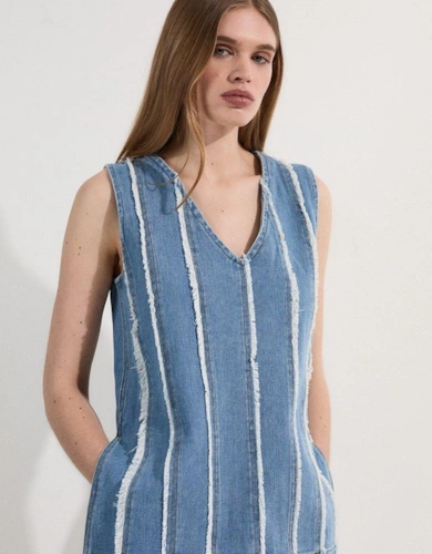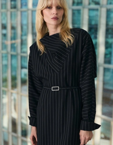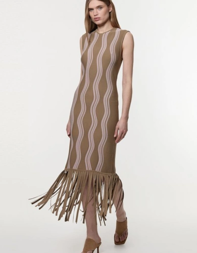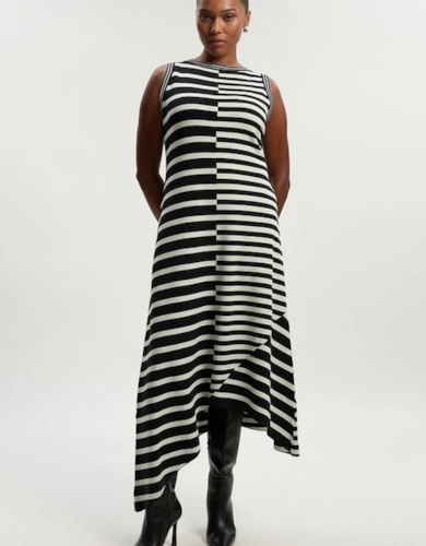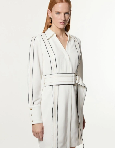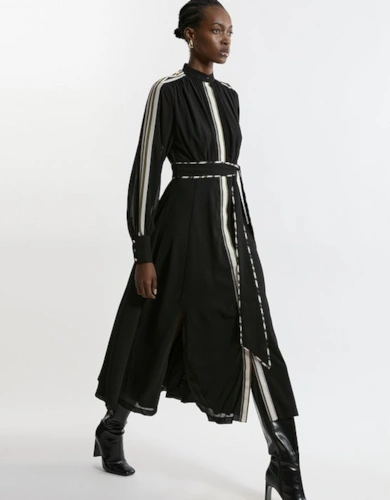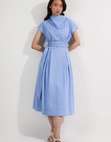 Sage Green Stripe Wrap Belted Viscose Midi Dress