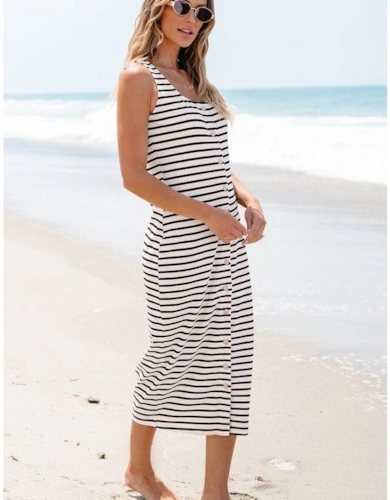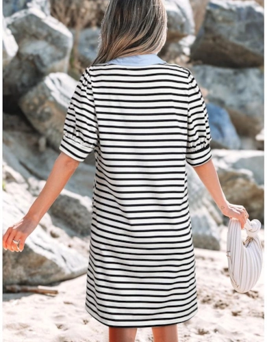 Black Stretch Stripe Mini Dress